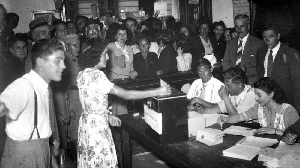 "Mujeres de mi Patria, recibo en este instante, de manos del Gobierno de la Nación, la ley que consagra nuestros derechos cívicos. Y la recibo ante nosotras, con la certeza de que...