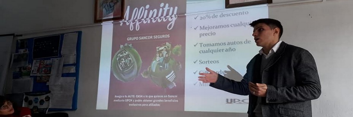 Los encargados del área de Seguros de la Unión del Personal Civil de la Nación (UPCN), Seccional provincia de Buenos Aires, David Quintana Murta y Martín Olivera, visitaron, el pasado jueves 23, los distritos de Ezeiza y Esteban Echeverría, donde mantuvieron una charla con los delegados locales en la que dieron a conocer todas las propuestas que ofrece el "Programa Affinity" a los afiliados de la organización gremial.