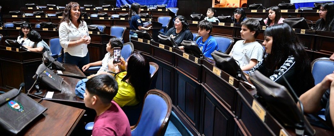 La actividad incluyó un recorrido por el recinto de sesiones y las distintas dependencias de la Cámara, permitiendo a las y los participantes conocer de cerca el funcionamiento del Poder Legislativo provincial y la importancia de las leyes en el ordenamiento de la sociedad.