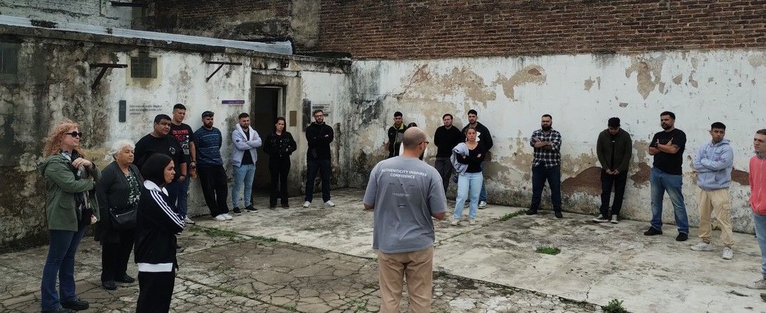 La jornada incluyó un extenso recorrido por nuestra historia reciente y las atrocidades cometidas en el denominado “Circuito Campos” en la ciudad de La Plata. La actividad contó con la presencia y guía de la compañera Alicia Minni, sobreviviente de la Ex Comisaría 5ta, el Destacamento de Arana y la Brigada de Investigaciones de La Plata, quien compartió su testimonio y experiencia con los y las participantes.