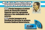 En 1944 y en 1953, Juan Domingo Perón, como presidente de la República, vuelve a dar muestras inequívocas de su convicción para favorecer el acceso de los trabajadores al conocimiento. De esta forma promueve la elevación cultural de los obreros, posibilitándoles ser agregados en las embajadas en el exterior. Años después, más precisamente un 7 de septiembre de 1953, inaugura en la Facultad de Derecho la primera Escuela Sindical Universitaria. De allí que se denomina a septiembre, dentro de la administración del General Juan Domingo Perón, como el mes de la capacitación sindical obrera.