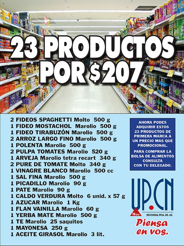 La Unión del Personal Civil de la Nación (UPCN), Seccional provincia de Buenos Aires, ofrece a sus afiliados la posibilidad de adquirir cortes de carne y productos de almacén a precios sumamente accesibles.