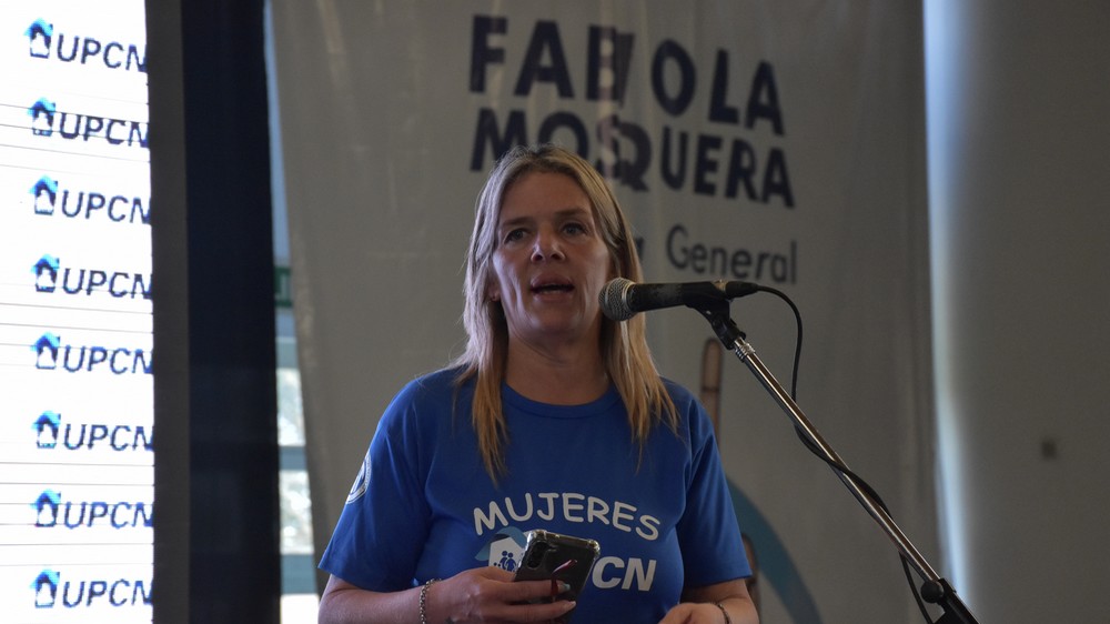 Al hacer uso de la palabra, la secretaria General de la UPCNBA, Fabiola Mosquera, expresó: “Acá tienen una compañera que va a pelear ante quien tenga que pelear por todas ustedes”. La titular de la organización gremial añadió que “ustedes tienen que decirle a sus hijos e hijas que hay un futuro, y que la única bandera que las va a proteger es la de UPCN y del peronismo”.